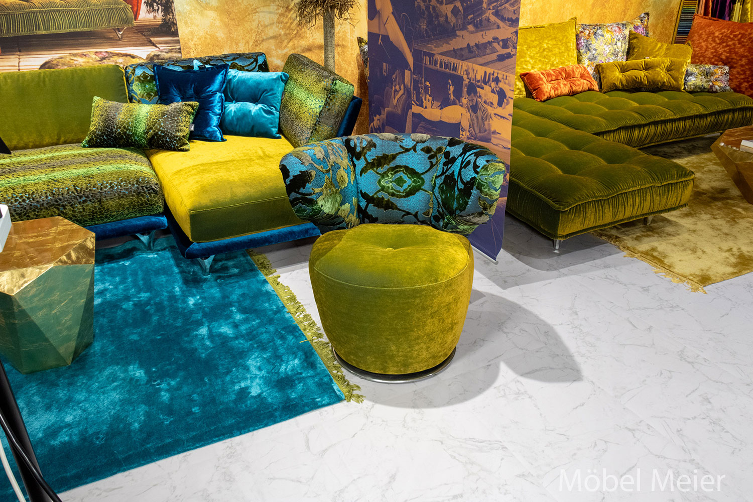 | 1x | Drehsessel 81 x 69 cm Bezug 1 Sitz: 66 8438 Velours midsummer oliv Bezug 2 Rücken vorn: 67 3832 Arabesk türkis Bezug 3 Rücken hinten: 66 8438 Velours midsummer oliv Fuss: 45 Aluminiumteller | A 113 |